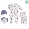 No-tears dressing & changes ✓Comfy, no pinch, encased stretch waistband / Footed trousers ✓Envelope neck offering plenty of room / T-shirt |